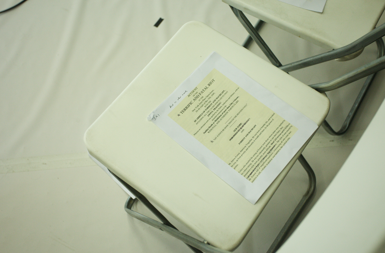 Following an open call, actors will audition for four full days with theater director Niegel Smith and will undergo a selection process. Open to the public for only two days the entire process will be recorded and included in a resulting video piece. Exploring simultaneously the limits and in betweens of theater, film and performance art, the live recording emphasizes the experience that is being created by actors and audience.